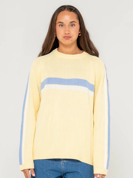 Rusty - White Lines Long Sleeve Crew Neck Knit Top | Pale Banana/Retro Blue